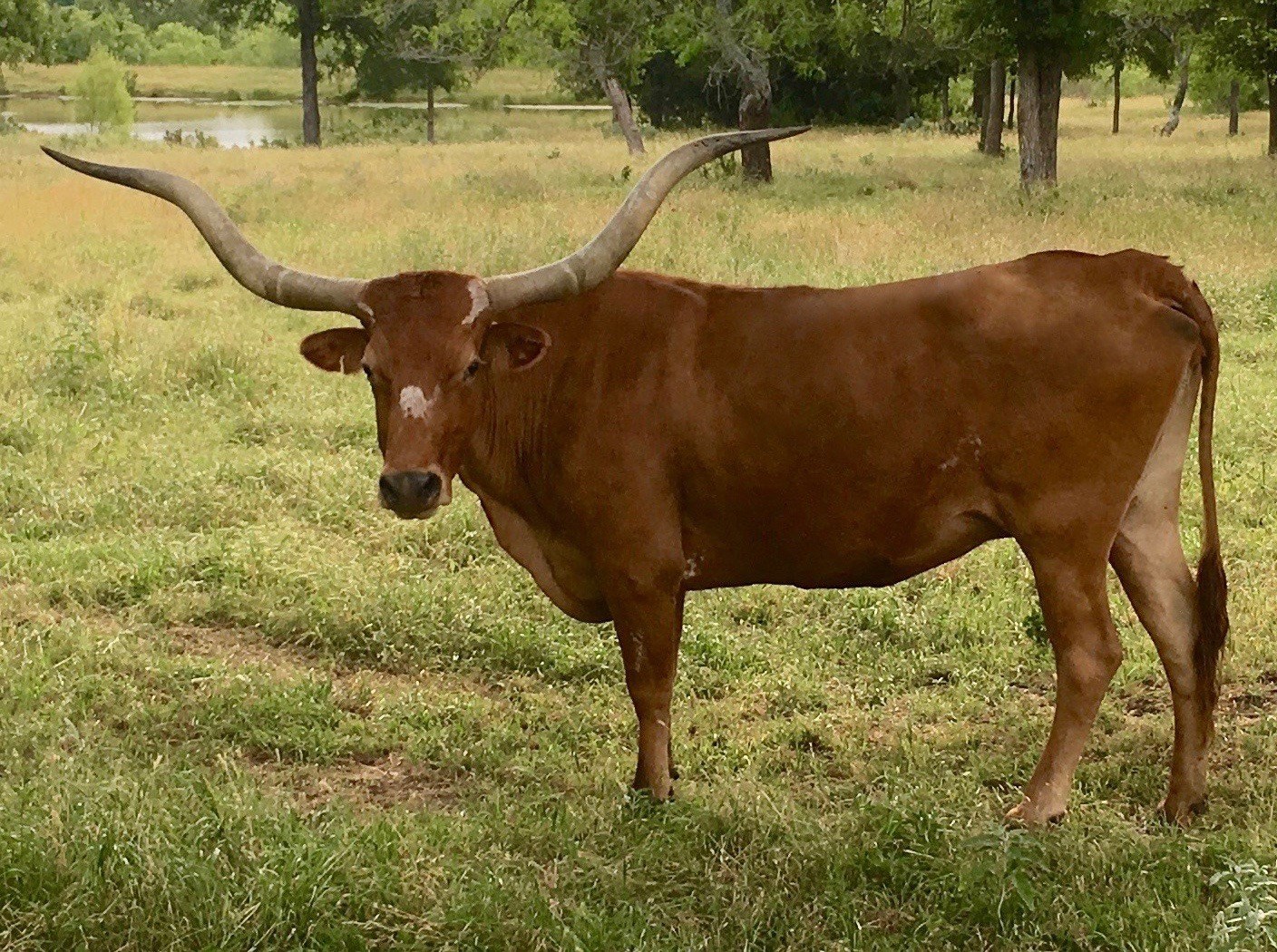 Check out the heavy triple twist horn on this gal and classic genetics going back to Overlyn and Overchill on the top with Watson and Butler breeding on the bottom. Her big, twisty horn genetics, blended with Jest Command's size, conformation and flashy color, should give us everything we look for at Fiebrich Longhorns. Watch out for this Grande Dame's progeny.